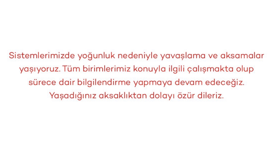 yaşanan yoğunluk nedeniyle başta mobil işlemler olmak üzere sistemde aksamalar yaşandığını ve çözüm için çalışmaların devam ettiğini duyurdu.