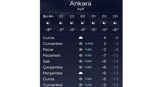 - Başkent Ankara ve metropol şehir İstanbul'u, kar yağışlı bir hafta karşılayacak. Meteorolojik tahminlere göre, her iki şehirde Cumartesinden itibaren hafta boyu kar yağışlı olacak.