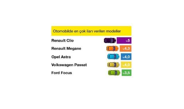 Rapora göre ayın en çok ilan verilen kategorisi Otomobil oldu. Sıralama; Minivan & Panelvan, Motosiklet, Arazi/ SUV & Pick-up ve Ticari Araçlar kategorisi ile devam etti. Marka & Model sıralamasının lideri Renault – Clio oldu. Sıralama; Renault – Megane, Opel – Astra, Volkswagen Passat ve Ford Focus ile devam etti. Arazi/ SUV & Pick-up kategorisinin marka sıralaması ise Nissan, Volkswagen, Land Rover, Peugeot, ve Dacia oldu.
