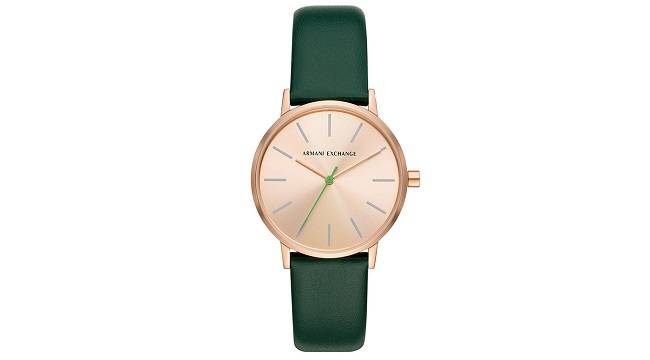 Armani Exchange’in yeşil deri kayışı ve rose gold rengindeki kadranıyla son derece zarif görünen yeni modeli, incelikli detaylarıyla tasarımın estetik ruhunu ortaya koyuyor.