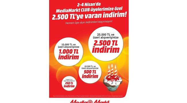 - MediaMarkt CLUB, 4 Nisan’a kadar devam edecek kampanya ile üyelerine seçili ürünlerdeki sepetlerde 2.500 TL’ye varan anında indirim fırsatı sunuyor. MediaMarkt Türkiye’nin özel hediye çekleri ve avantajlar sunduğu CLUB’a MediaMarkt mağazalarından ve mediamarkt.com.tr’den hızlıca üye olunabiliyor.