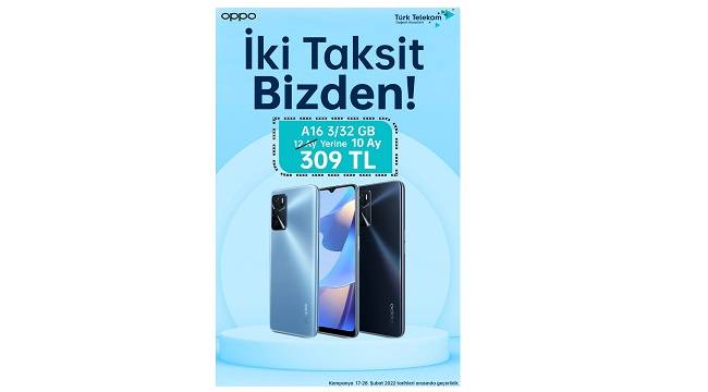 - 5000mAh pili, HD+ Göz Koruyucu Ekranı ve Yapay Zeka Üçlü Kamerası ile dikkat çeken OPPO A16, Türk Telekom mağazalarında 'İki Taksit Bizden' kampanyasıyla tüketicilerle buluşuyor. Kampanya kapsamında akıllı telefonu taksitle satın alan tüketicilerin iki taksitini Türk Telekom karşılayacak.