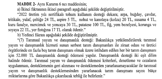 –– 2021 Yılında Yapılacak Tarımsal Desteklemeler ve 2022 Yılında Uygulanacak Gübre ve Sertifikalı Tohum Kullanım Desteklerine İlişkin Kararda Değişiklik Yapılmasına Dair Karar (Karar Sayısı: 5284)